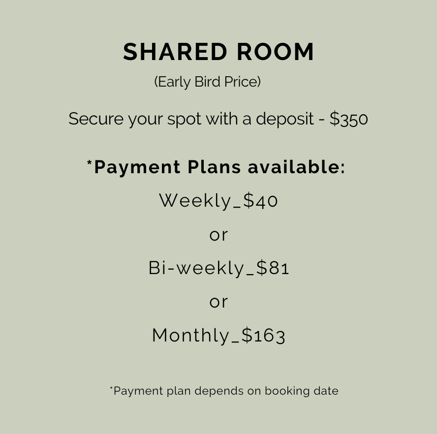 Register by choosing a package below. Space is very limited. The deposit to book is $350. Balance is paid in monthly installments or can be fully customized for you.